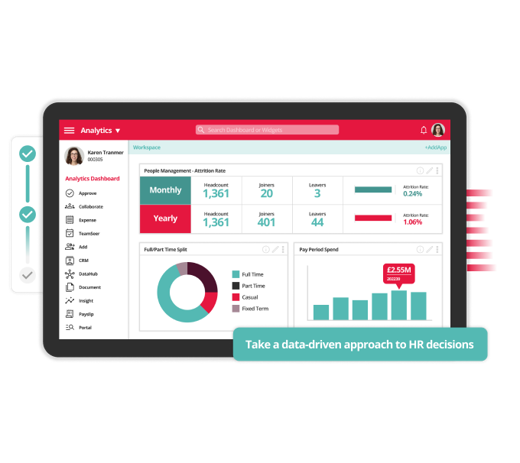 Regardless of your workforce complexity, our workforce management system is part of our all-in-one AI-enabled HR software, featuring embedded analytics connecting your entire suite to help you make informed and strategic decisions about your workforce.