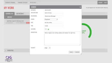 The incident reporting within our health and safety software means you can manage incidents across all sites, move away from paper-based systems and minimise risk with the fast and accurate reporting of near misses. It also allows you to easily maintain your responsibilities regarding RIDDOR notifiable accidents.
