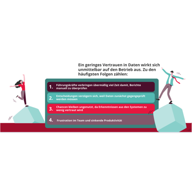 Ein geringes Vertrauen in Daten wirkt sich unmittelbar auf den Betrieb aus. Zu den häufigsten Folgen zählen: