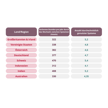 Regelmäßig zwischen nicht miteinander verbundenen Systemen zu wechseln, kostet Hotels 409 Stunden pro Jahr.