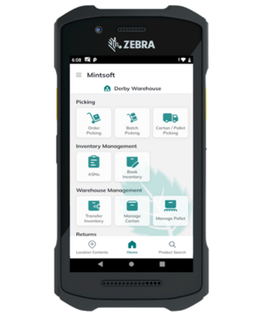 - Picking – Products are retrieved from warehouse locations using mobile picking technology