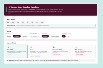 Superannuation calculation tools for payday super compliance.