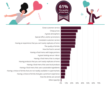 The food quality is again the far most important consideration for respondents, not just when considering their loyalty to a venue, but also when they consider if their experience is good value for money.
