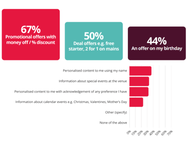 The under 35’s still rated quality highly, but also ranked having an experience you can’t replicate at home and large food portions as a higher factor for them vs the older age groups.