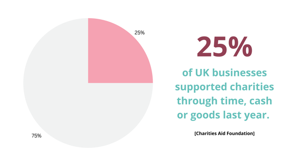 According to the Charities Aid Foundation, only around 25% of UK businesses supported charities through time, cash or goods last year.