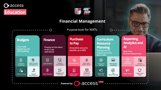 Built on Access Evo, it gives your school or trust real-time visibility, faster workflows and complete confidence in your financial position.