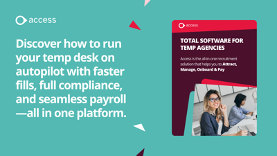 Access Recruitment’s all-in-one platform for temp agencies helps you fill shifts faster, stay compliant, and scale without limits.
