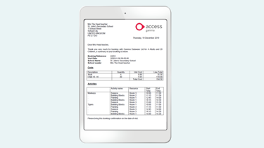 - Use the booking system to record group booking details including numbers, room layout, catering requests, timings, and special needs, schedule actions and receive automated reminders.