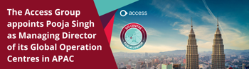“We are delighted to bring Pooja on board to head up our newest GO Centre in Malaysia and help contribute to building a thriving digital economy and diverse talent pool for Access in APAC. Pooja's outstanding credentials and her dedication to professional growth extends and aligns perfectly to our vision.