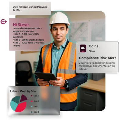 Access Coins workforce management, enables HR and finance departments to communicate seamlessly while removing the need to double down on inputs, minimizing errors. Access Coins workforce management software automates payroll, benefits, union and prevailing wage calculations and leave requests. Significantly reduce administration time and costs, ensure correct payments, boost morale and free your team to concentrate on high-value work.